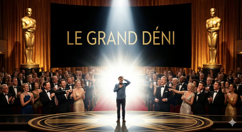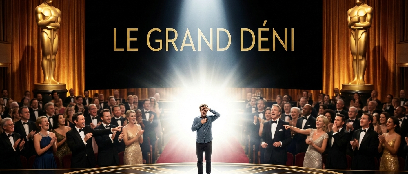 VOUS (Au micro, serrant les dents) : Merci… Je voudrais remercier mon fond de teint anti-cernes pour ce camouflage structurel, et mon système nerveux pour cette performance d’adrénaline qui me permet de tenir debout. Cet Oscar est lourd… comme mes jambes.